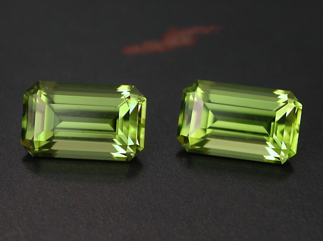 2 San Carlos Peridots Faceting a matching pair is always a bit challenging, even if the design is new and I have to do a test cut before. This it worked well, it was a lot of work and many hours later a nice result appeared after the second stone was freed from the dop. Very noteworthy is the origin of these two beauties: San Carlos in Arizona, USA thelocality where you can in google-maps the diggings for these gems: San Carlos, AZ. 3.71 cts., 8.9.x 5.4 s 4.2 mm not for sale, sorry! |