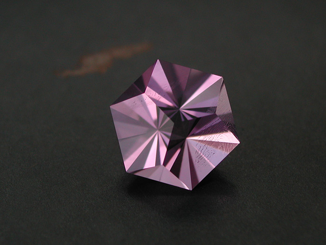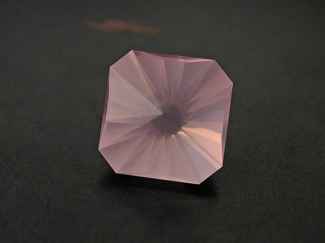Madagascan Rose Quartz Soft-pink Rose-Quartz from Madagascar. Faceted in a longer version of my "Lighthouse of Porporela" design. 7.42 cts. 15.3 x 11.7 x 8.4mm available |