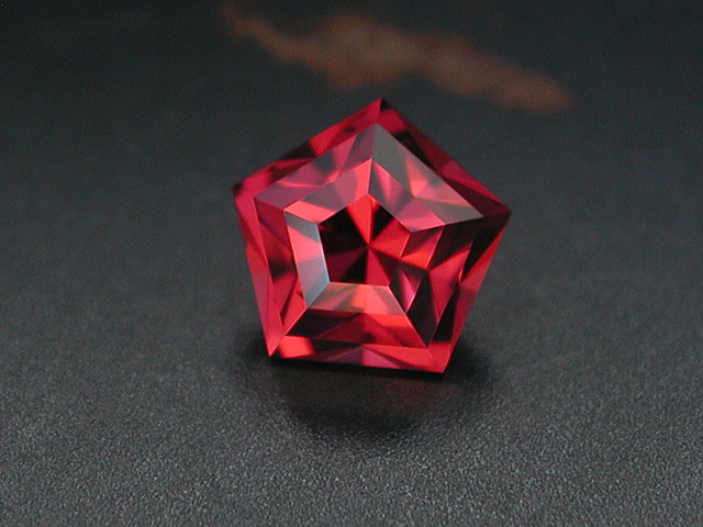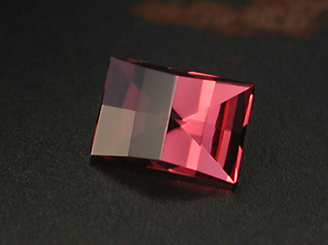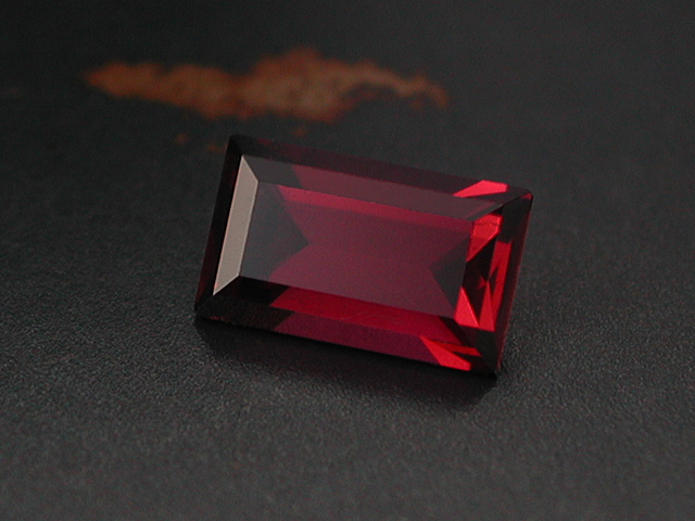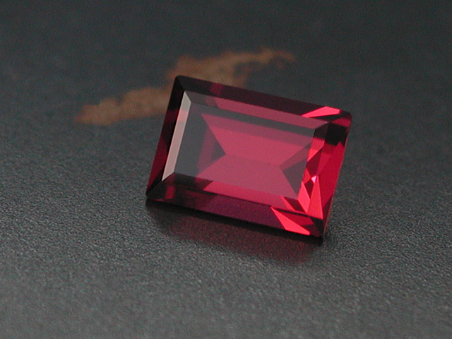 Tanzanian Rhodolite Pure dark red tanzanian Rhodolite. Another "Mini Opposed Bar" cut with its pixel reflections. Eyeclean clarity. 1.91 cts., 9.3 4.3 x 4.7 mm available |