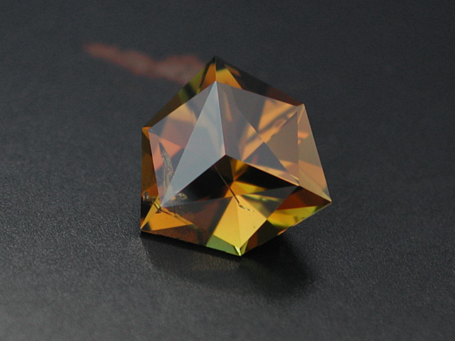 Madagascan Dravite The Dravite shows it different colours (orange, brown and a little golden hues) in the Mini Opposed Bar design. Eyeclean and vivid. 2.05 cts., 8.8 5.7 x 5.2 mm available |