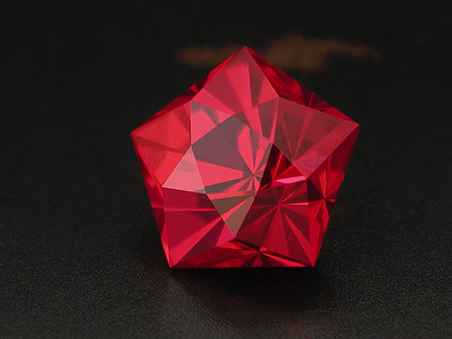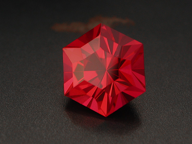 Manmade Bitterfeld Ruby The hexagon version of the "Cingili Mingili" with a small table. Nice gemstone even it isn't from nature. 3.08 cts. 7.8 x 6.3 mm available |