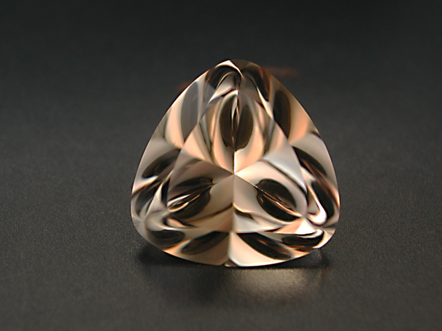 Surselva Smoky Quartz This is the brandnew "Palac Struga" design my 5th and (surely last) hemispherical design from this year. It is very much of the idea I always had in mind and am happy with it. The Smoky Quartz is from the Surselva region in Central Switzerland and was found from Matthias Benz a Strahler also from my hometown Munich. Look at his website: world-of-crystals.com This beauty is near flawless, super brilliant and has a very light brownish hue. 12.36 cts., 13.3 x 12.8 mm available |
