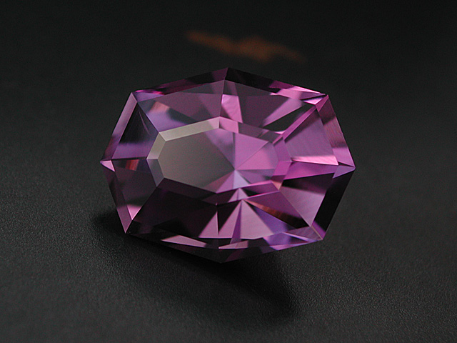 Madagascan Rose Quartz Soft-pink Rose-Quartz from Madagascar. Faceted in a longer version of my "Lighthouse of Porporela" design. 7.42 cts. 15.3 x 11.7 x 8.4mm available |