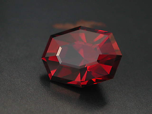 Tanzanian Rhodolite Pure dark red tanzanian Rhodolite. Another "Mini Opposed Bar" cut with its pixel reflections. Eyeclean clarity. 1.91 cts., 9.3 4.3 x 4.7 mm available |